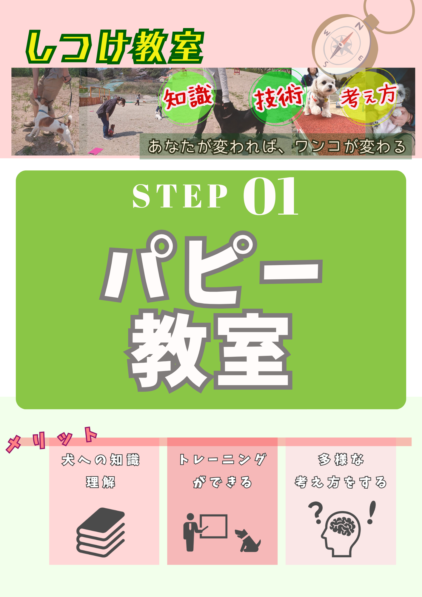 【しつけ教室】への参加は、まず【スタート会】(Step1)を受講。
