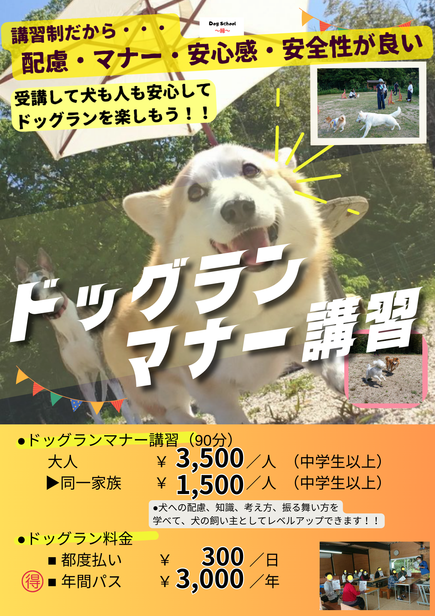 ■メニュー【ドッグラン・マナー講習】の詳細説明をよくお読みになってから、ご予約ください。